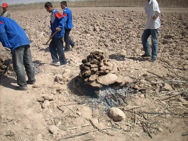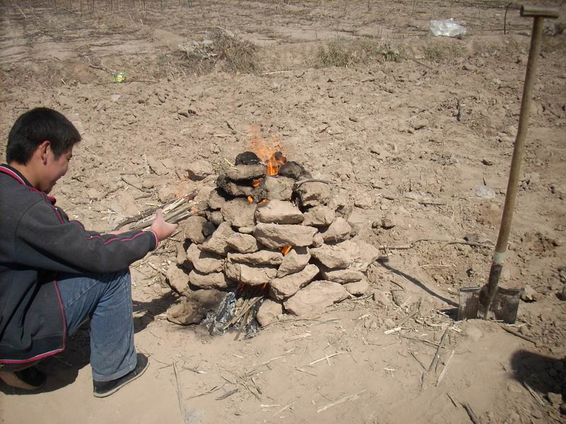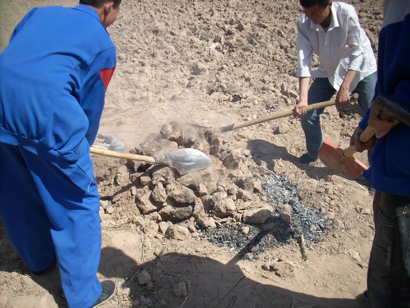 就平常而言是最简单的事了,在这儿可不同,技术含量高着哩,因为土炉子容易被捣塌,所以不但要小心,而且还得掌握一定技术,要烧的恰到好处方可。