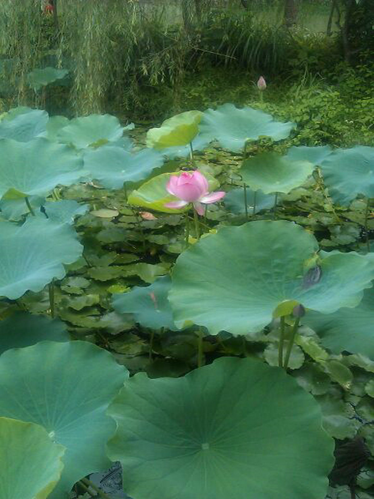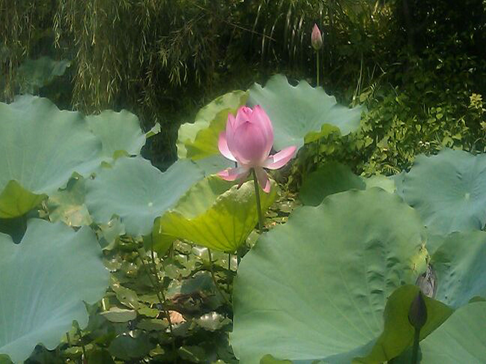 有的含苞未放的花骨朵,花骨朵很漂亮,荷叶像大圆盘。