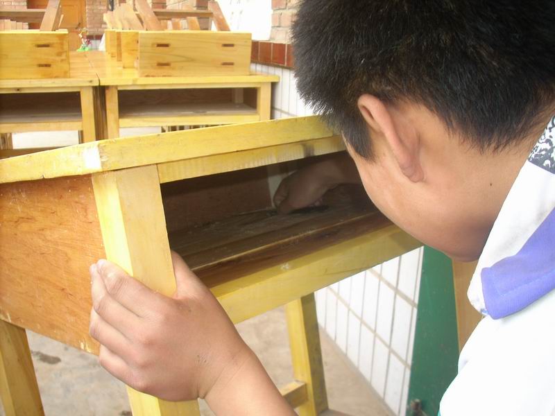 奋斗了整整一个中午,终于,一排排课桌恢复了它往日的光彩,桌面光滑明亮,四侧干燥光滑,就连桌洞中的墨迹也消失的无影无踪,摆在教室中整齐、明亮。 唯有不足的一点,历史的痕迹却不能抹去一道道伤痕。
