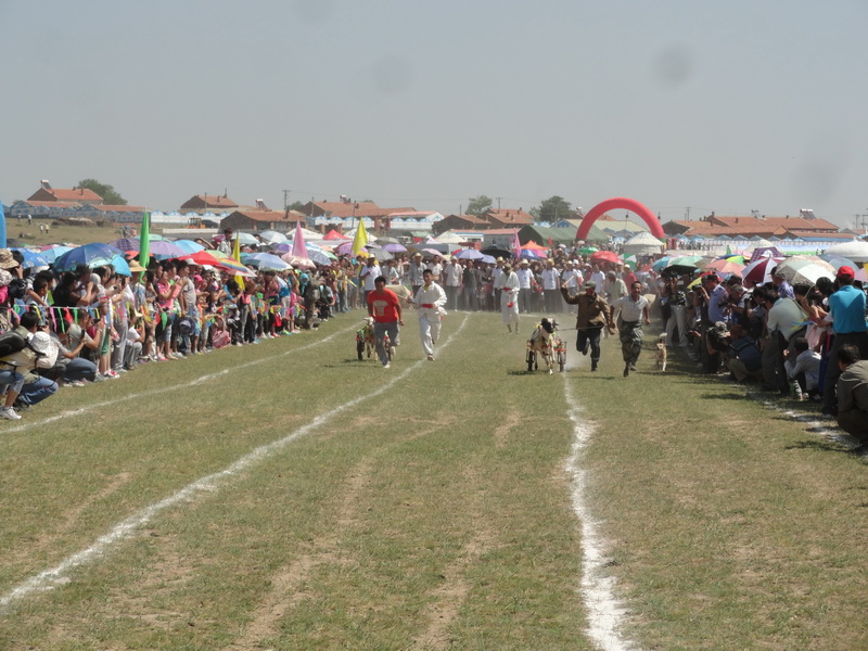 热情的蒙古族汉子为了给大会助兴,表演起来蒙古族摔跤。 肉养拉车也是赛羊会的一项比赛项目。羊儿拉上特制的小车,在赛道上奔跑,我还是第一次见到,真好奇那些羊儿会那么听话。