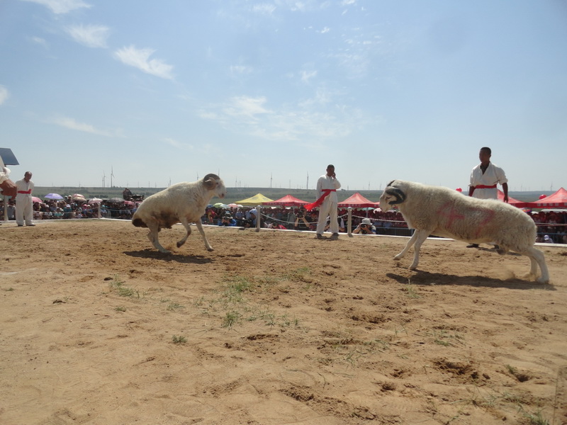 那些前来参加比赛的公养,个个膘肥体壮,养主更是为它们披红挂绿,显示出盛气凌人,冠军非我莫属。随着裁判一声哨响,两头公羊拉开架势,真是"仇人见面分外眼红",每一次碰撞,都发出"咣咣"的响声。