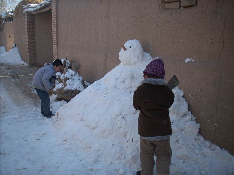 "表弟们,快来,咱们堆个雪人咋样"好,好,这太好了" 望着表弟们脸上的花朵我不由高兴起来,说干就干,我拿来铁锹、铁铲,"看你们的了" 没想到这群小家伙竟你一铲,我一铲,不到一小时就弄好了。
