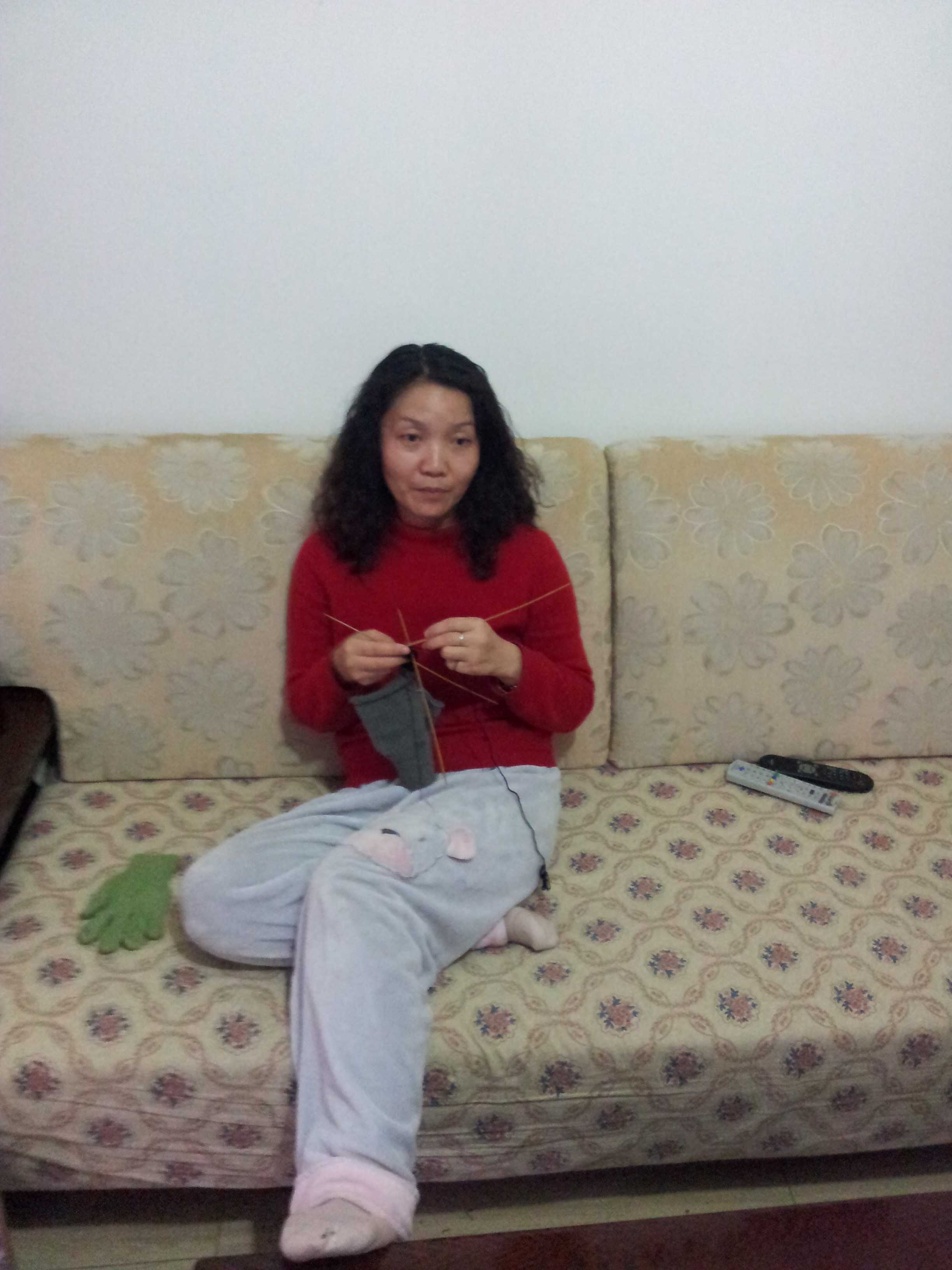 就算患有这么多的病,妈妈依然全心全意的为家付出,冬天已经来临,我和爸爸上街出门都需要手套,但是外面卖的质量不好,妈妈拍冻坏了我和爸爸,一有闲时间就织毛衣,希望我和爸爸这个冬天不会太难熬。 除了织手套,妈妈还会织毛衣、毛裤、背心,甚至袜子,我们爷俩全身的毛织品几乎都是出自她之手。 妈妈,我爱你!