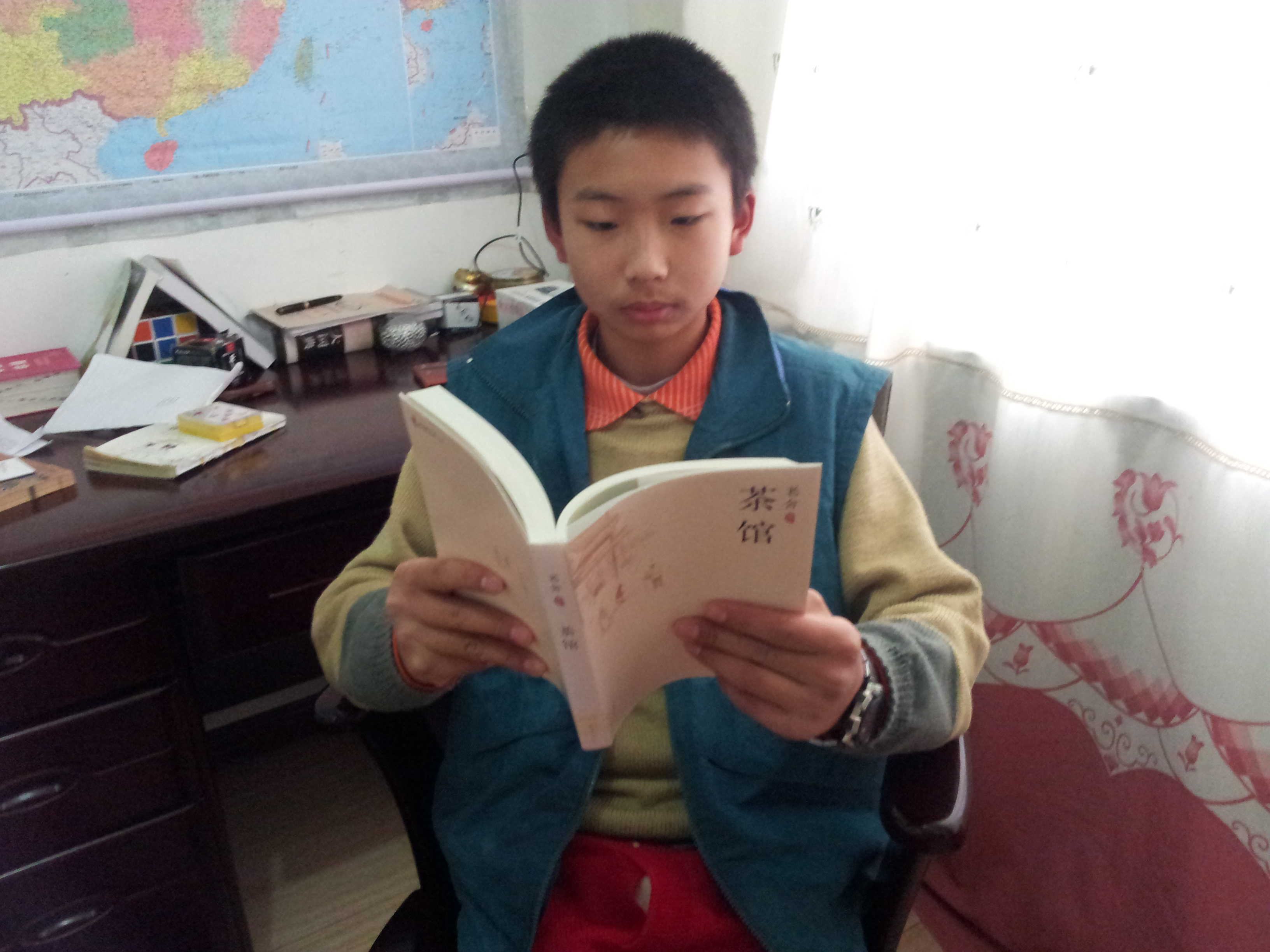 这是我,我正在看书,学习了一天还有闲情看书?没错,只要有兴趣,别说看书,就是造火箭也可以完成。我喜爱看书,书可以充实我自己,提高素养。我,由于是家里的独生子,所以父母格外疼我,正因为如此,我更要努力学习,以后报答父母。这就是我们一家人!这就是我们和睦的一家!