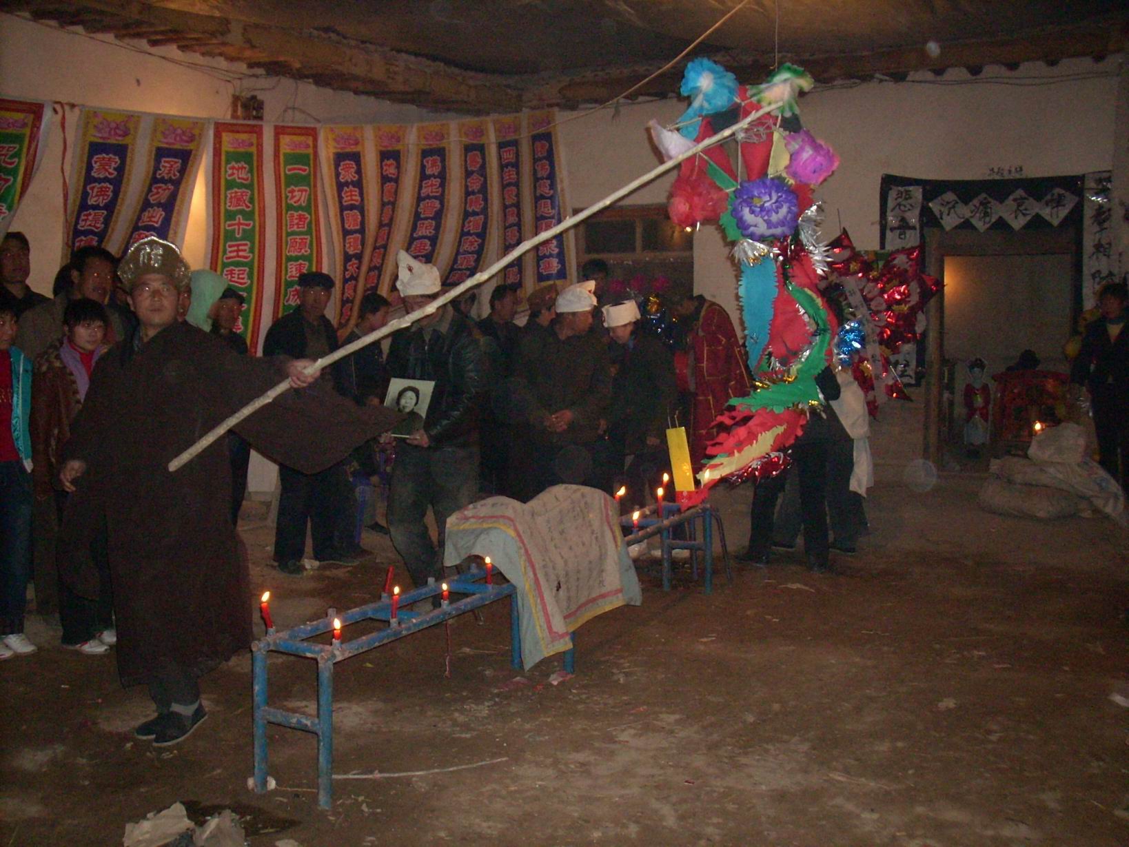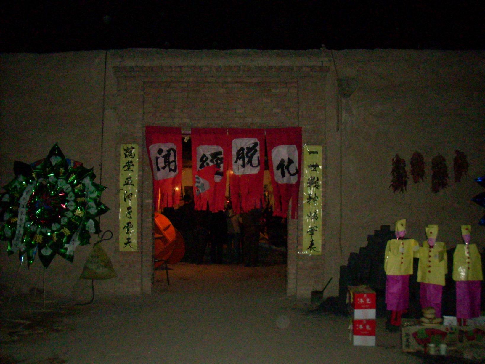 到了晚上,更是热闹,各种灯笼各有风采,有的还在转呢?尤其是"跑桥",更具风采,和尚道士在前面跑,孝子孝孙们跟在后面跑着、哭着,还有几人跪在四角烧着纸钱,喇叭声震天,哭喊声撼地,好不热闹。 …… 在悲哀的丧事中,五六个和尚或道士持着喇叭,锁呐,鼓鼓,镲镲为亡人隆重超度.有许许多多的花圈留言,后人挽赠,先人流古千芳,从忙杂乱中,哭声悲哀,这些都是旧社会流传下来的封建迷信风俗。