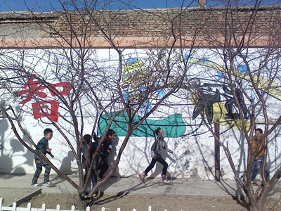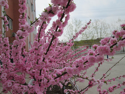 春天,四周全是花花草草,有桃树、李子树、杏树,意味着"桃李满天下"。还有着努力挺拔的小草,绽放的花朵也在向我们点头微笑。
