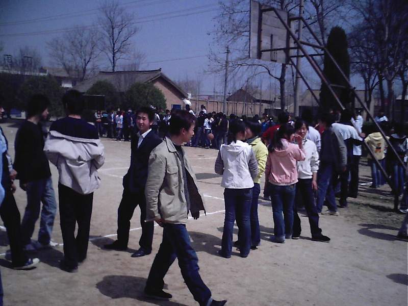 比赛开始前,体育老师对参赛队员做了指导,讲明比赛规则和纪律。所有队员同学都认真听着,唯恐自己阵上失利。比赛双方班级的其余同学各自站在两边,为自己班的队员鼓劲加油!一种势均力敌的架势。