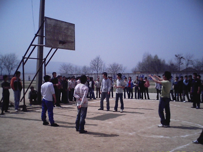 比赛正式开始了,这些平时的文弱书生在篮球场上一下子 变得很威武,他们利索的动作,轻捷的身影,娴熟的传球技术,还有相互默契的配合,不时令围观同学惊叹。不管那边同学进了球,全场都会发出响亮的喝彩声、加油声。这时的校园,数这里最热闹。
