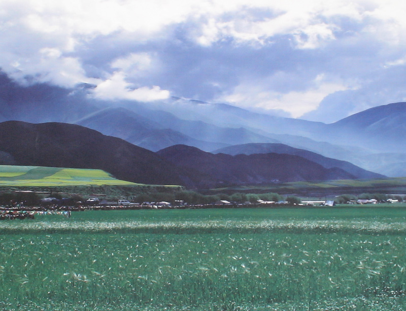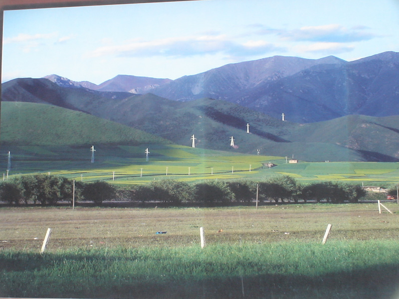 我们慢慢向前走,渐渐遥望着别处,地上五颜六色的野花,天空中飘着棉花似的白云,与景色宜人的山构成了一幅山水田园画。一阵风吹过,这幅画在风中摇摆欲坠,显得更加华贵,美颜!