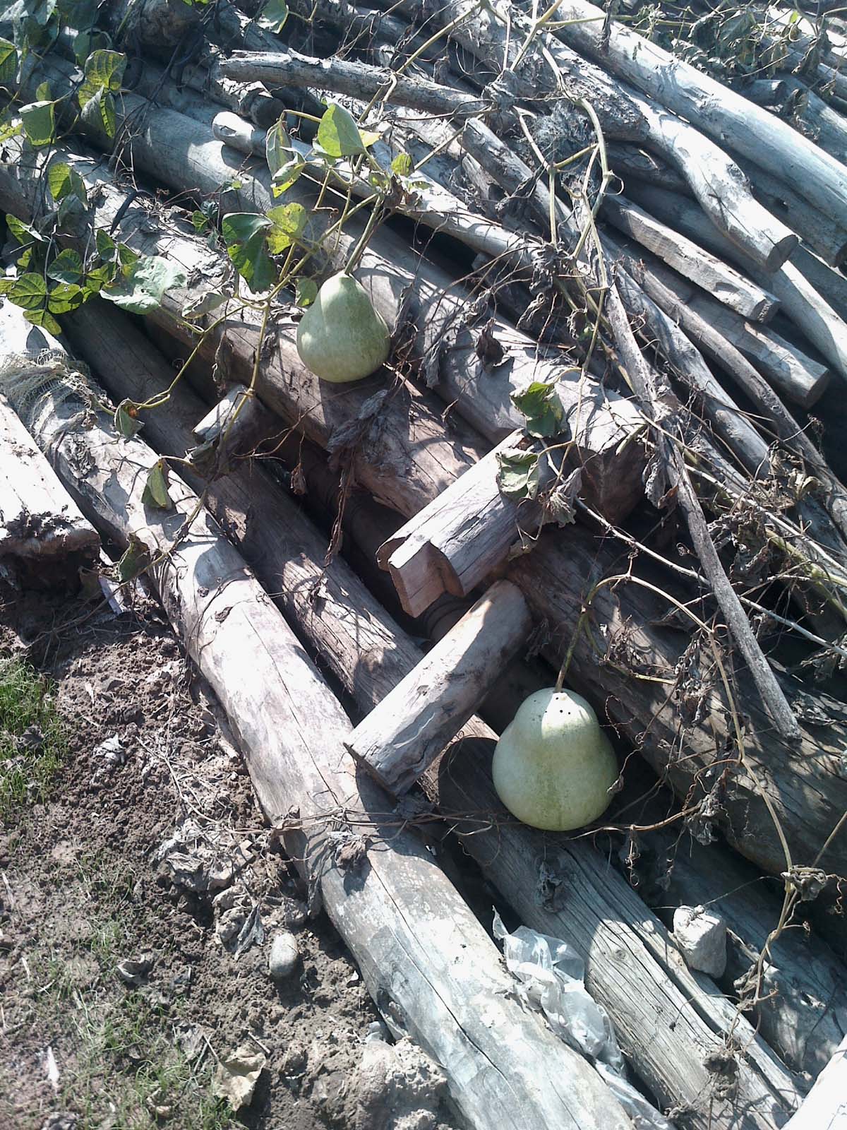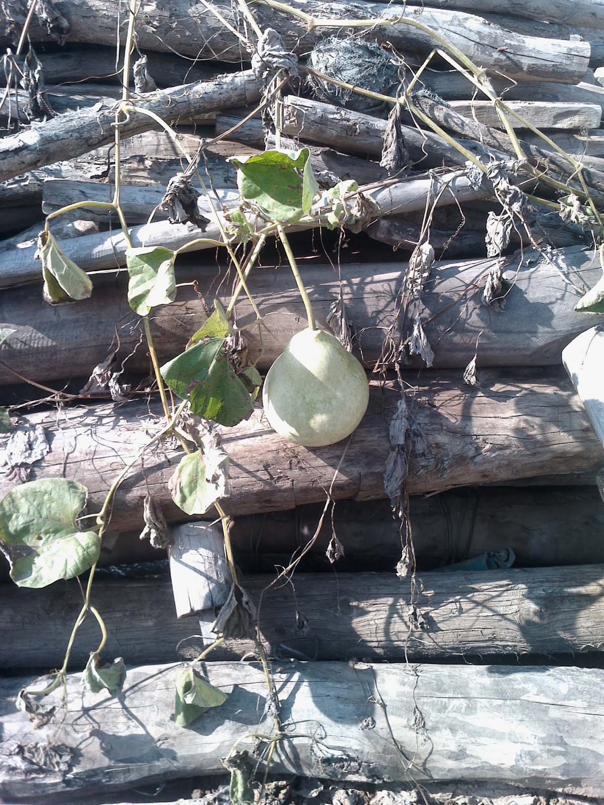 起先,我认为是品种不好,籽不纯正就能结出变形的葫芦。可是一个发现,又让我改变了这样的看法。同样的一根藤蔓上有两个小葫芦就很漂亮,上面小,下面大,很均称。要是籽种不纯的话,应该都是变形葫芦啊。看来,不是这个原因。