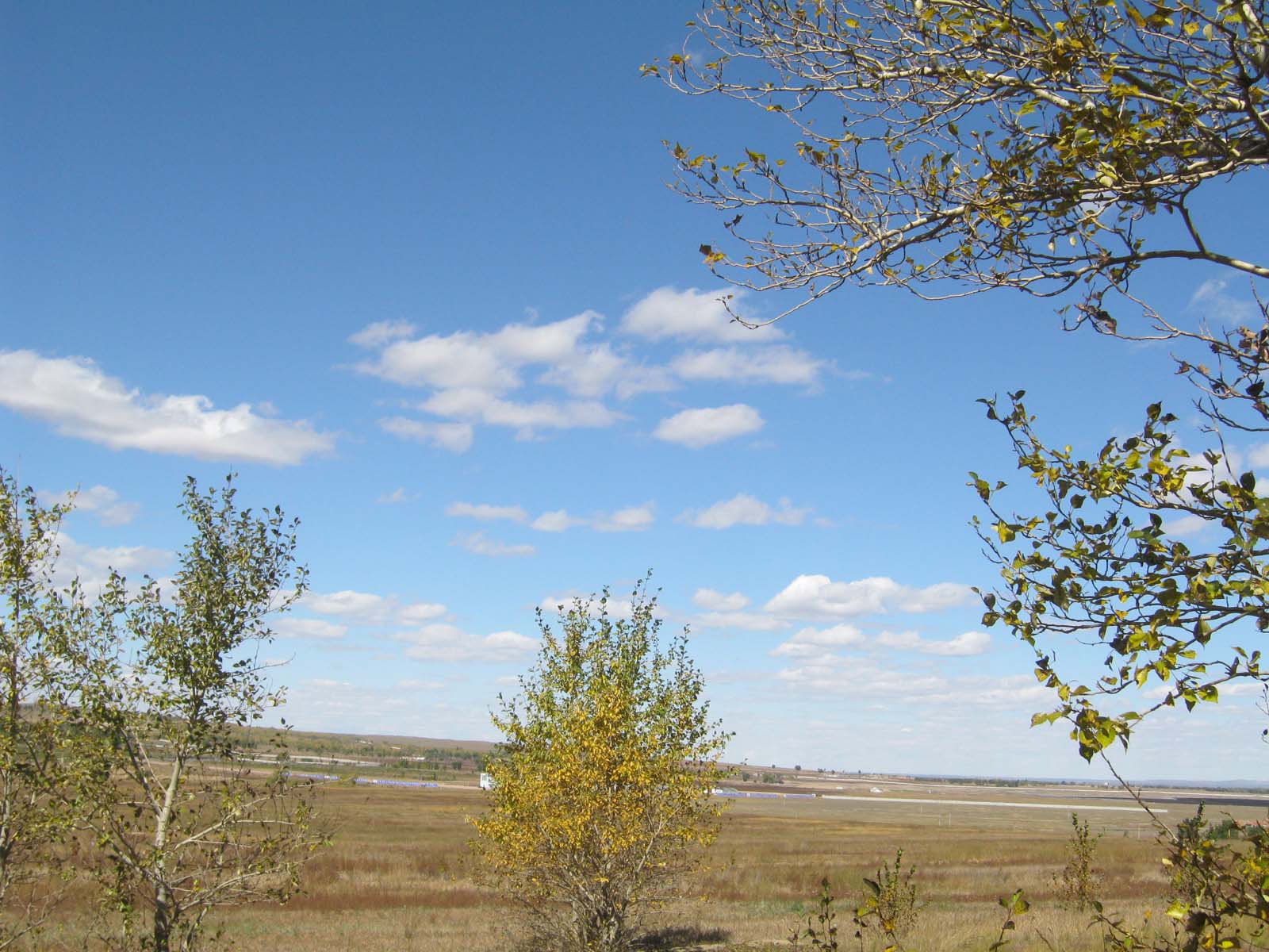 在大草原上,远远望去,到处一片鹅黄,像一块金黄色的绸缎铺在大地上,几朵小野菊零星的点缀在草地上。几颗高大挺拔的白杨树立在小路边,像卫士一样守卫者这条弯弯曲曲的乡间小道。一阵风吹来,金黄的树叶飘落下来,像一个个金色的小仙子在空中飞舞。
