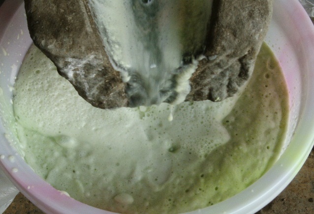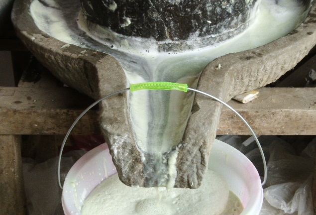 中午,我简单地做了一些菜,吃过午饭后,我和爷爷又继续剥豆子了。 唉,豆子太多了,又难剥,好不容易才剥完,足足一大盆。接下来我就和妈妈一起推豆子,妈妈一把一把地往磨子里添,豆浆就从四周流了出来,然后又流到桶里。不大一会儿,豆子就全部被磨成了浆。