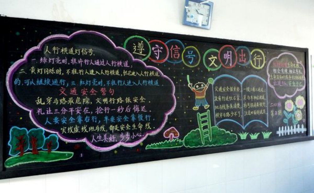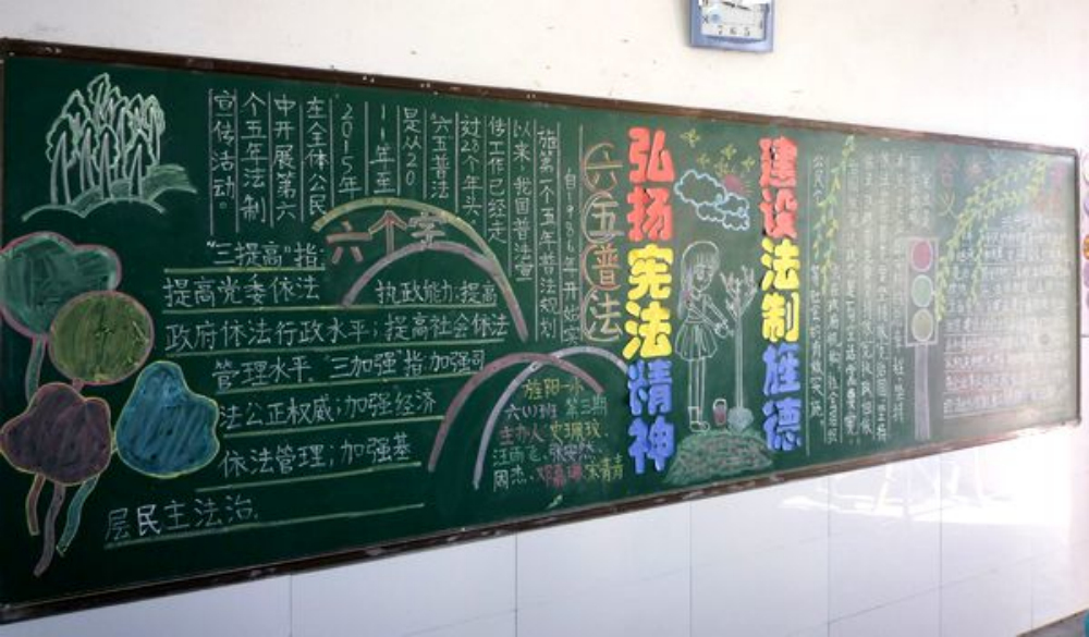 本次黑板报评比活动,七年级以“遵守交通信号,安全文明出行”为主题,八年级以“如何预防冬春季传染病”为主题,九年级以“弘扬宪法精神,建设法治旌德”为主题。各班都非常重视本次评比活动,在班主任的精心组织下,我们踊跃参与,积极查找相关资料,精心出了一期高质量的黑板报。从主题到排版都精心设计,板报内容丰富多彩。