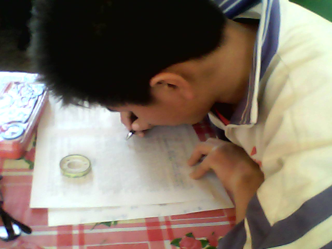 我答着答着,碰上了一只拦路虎,费了九牛二虎之力,终于把它搞定,长长地会舒了口气。不经意悄悄抬起头看了一眼周边的同学。有的同学轻松自如,一副神态自若的样子;有的同学 好像遇到了一些麻烦,皱着眉头,一副冥思苦想的样子。