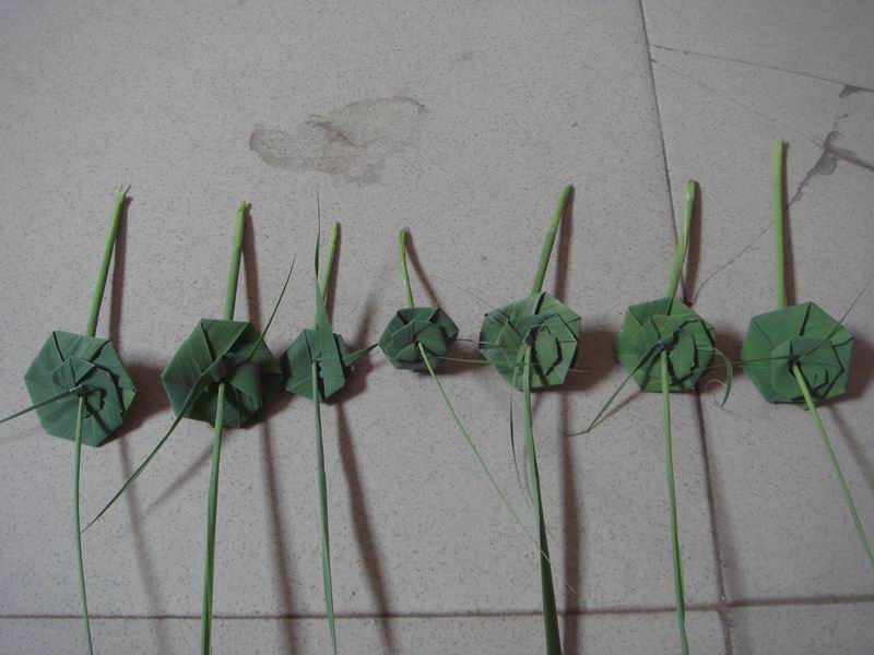 制作绿叶花的原材料十分简单,只需几片芦苇叶就可以了。