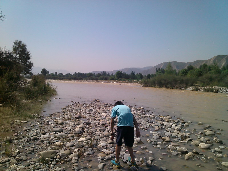我们从十点出发,也就半个小时吧,就到了大通河边。一到大通河边,首先映入眼帘的是那浊黄的河水和岸边的石头。黑子一见到河水,就往一小滩河水跑去,跑过去,马上掉头向我们跑来,来来去去,毫不厌烦。