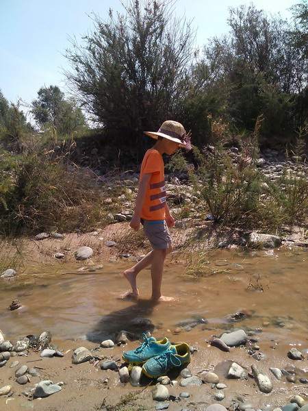 我们沿着岸边走,走着走着,发现了一条小支流,水很清,很浅,仔细看,还有小鱼在游动呢,我和弟弟便开始抓小鱼了。抓了半天啥也没抓着,弟弟没耐心了,便站在一旁看我抓鱼。我也抓不着,休息了一会,便又去捡石头了。