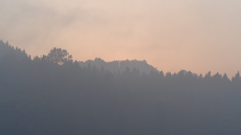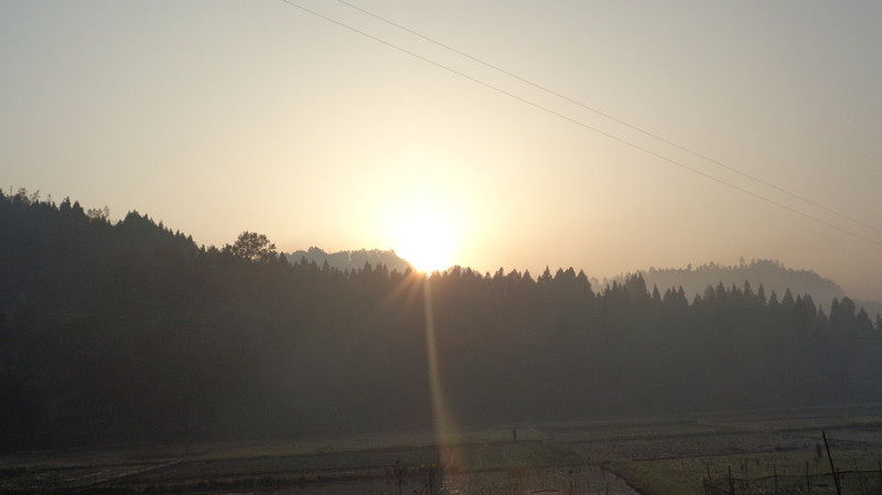 渐渐地,天边开始出现一层淡淡的红晕,一片一片的包裹着远处的山和树木,世界又多了一丝色彩。