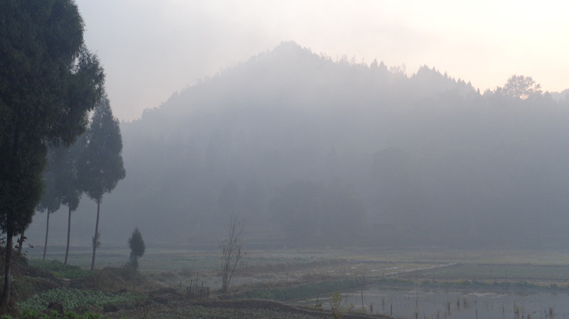 时间慢慢的推移,太阳爬上来了,阳光从山坳处射了出来,霞光万丈,仿佛在对雾说:"你该下班啦,由我来接你的班吧!"雾,带给我一个朦胧充满遐想的世界,雾消散后又带给我一个阳光灿烂的今天!