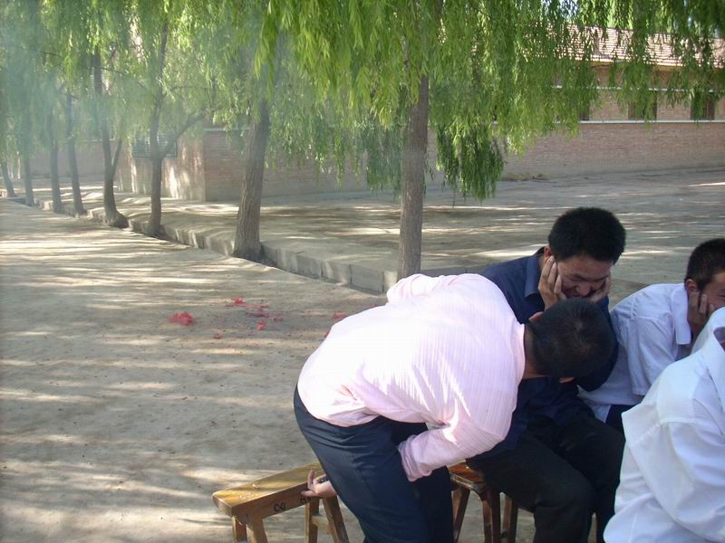 "辟里啪啦"一阵鞭炮声,毕业典礼结束了。