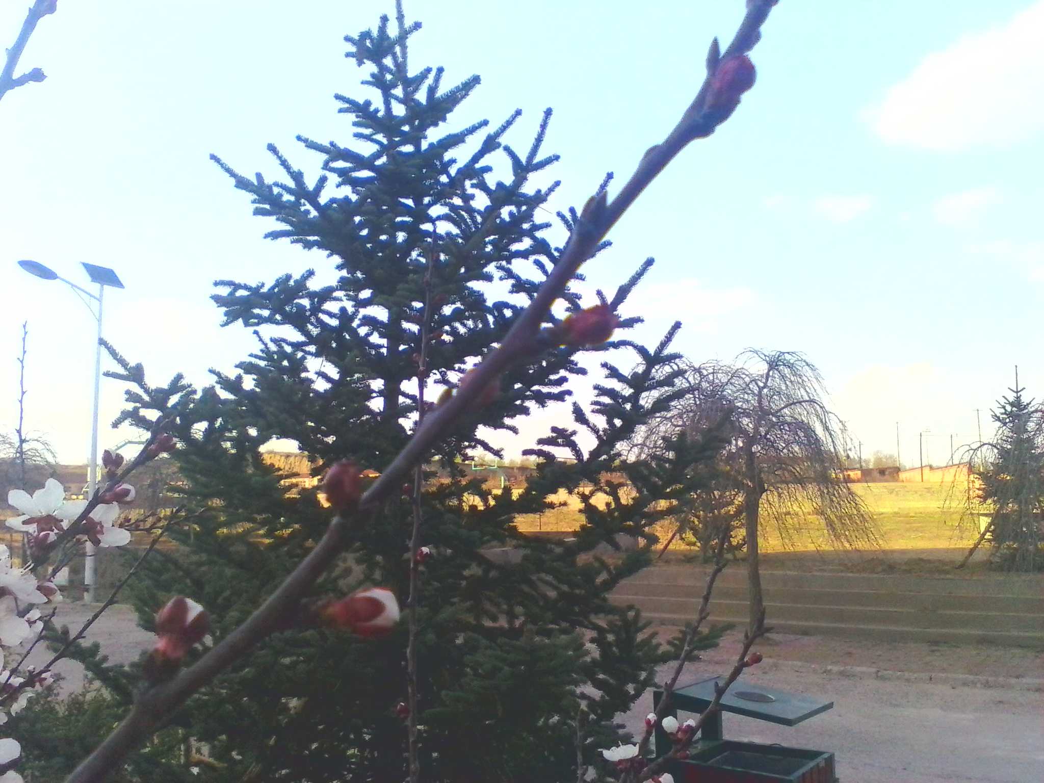 在我们学校前面就在一大片松树。树木郁郁郁葱葱茂盛极了。远看这些松树像是一座座绿色的高塔。每棵松树都是毛直的,大家约有三四米高。高的有五六米的样子。远远望去学校的前面绿绿的让这个寒冷的季节有了些生机。