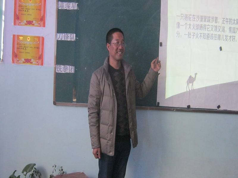 绘五官眼睛——总是在锐利,有规律的转悠着。当你回答问题时,若不知道答案。他就会直勾勾地盯着你,直到你不敢抬头,他才"恋恋不舍"的离开。也许正是由于尖锐的掩护,他十分"猖狂",不停地转,所以我们变得很安分。生怕成为典型的例子,感受那"无穷"的"杀伤力"。嘴——它真的很强,有时候,每句话都一阵见血,让人十分难堪,恨不得找个地缝钻进去。有时候,它又极富哲理,让同学们在笑过之余去沉思。从他里面冒出过三句十分经典的画,并在班上广为流传。其一:"证明就是应该有根有据,条条有理。"其二:"想要马儿好,还不让马儿吃草,天下没有这个道理。"其三:"你自己不学,即便我最贱你的肚子,那也是只有把你胀死,把我闷死,把你的父母活活气死"。他的这几句话,我一直铭记于心。