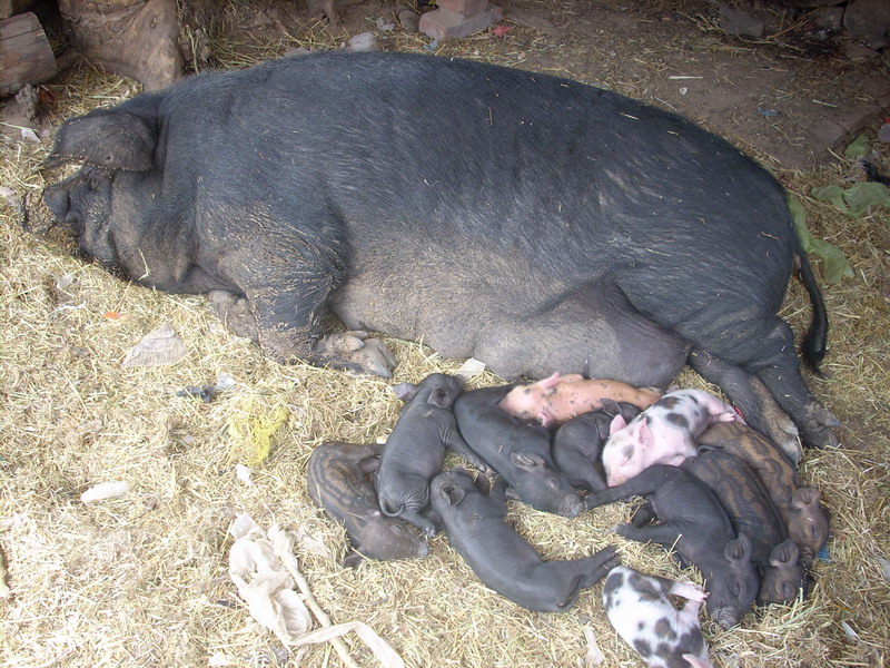 小猪满月后,主人就会把它们一一卖出去,可是,卖小猪母猪便成了最大的忧虑。每次都得把母猪赶出门外,把门堵得死死的,然后再抓猪娃。母猪听到小猪们的叫唤会把门撞得来回摇动,门要是稍不结实,撞开后母猪会疯一般地冲进人群,那样子像是一头发怒地猛虎。很多时候,主人不得不放弃卖猪的计划,只好另做打算。一旦小猪被卖掉后,母猪会接连几日不停地"哼哼",大概是在呼唤吧。爱子之心,真真切切,你能不说他是一位好母亲吗?