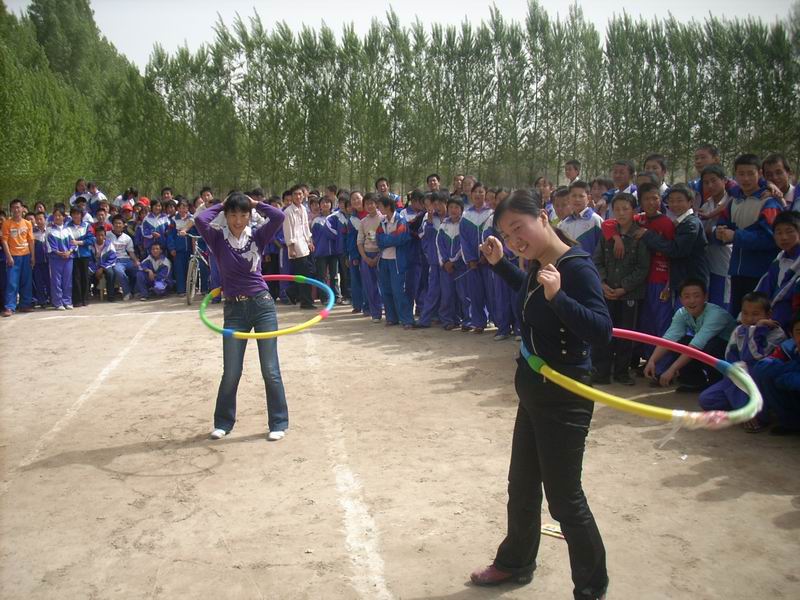还有那些老师的参加的项目,几位女老师上场了,呼啦圈在她们的腰间上下转动起来了,一分钟,两分钟他们还在坚持着,呼啦圈在她们的腰间变的那么驯服,最后有三个老师以15分钟的成绩并排第一。