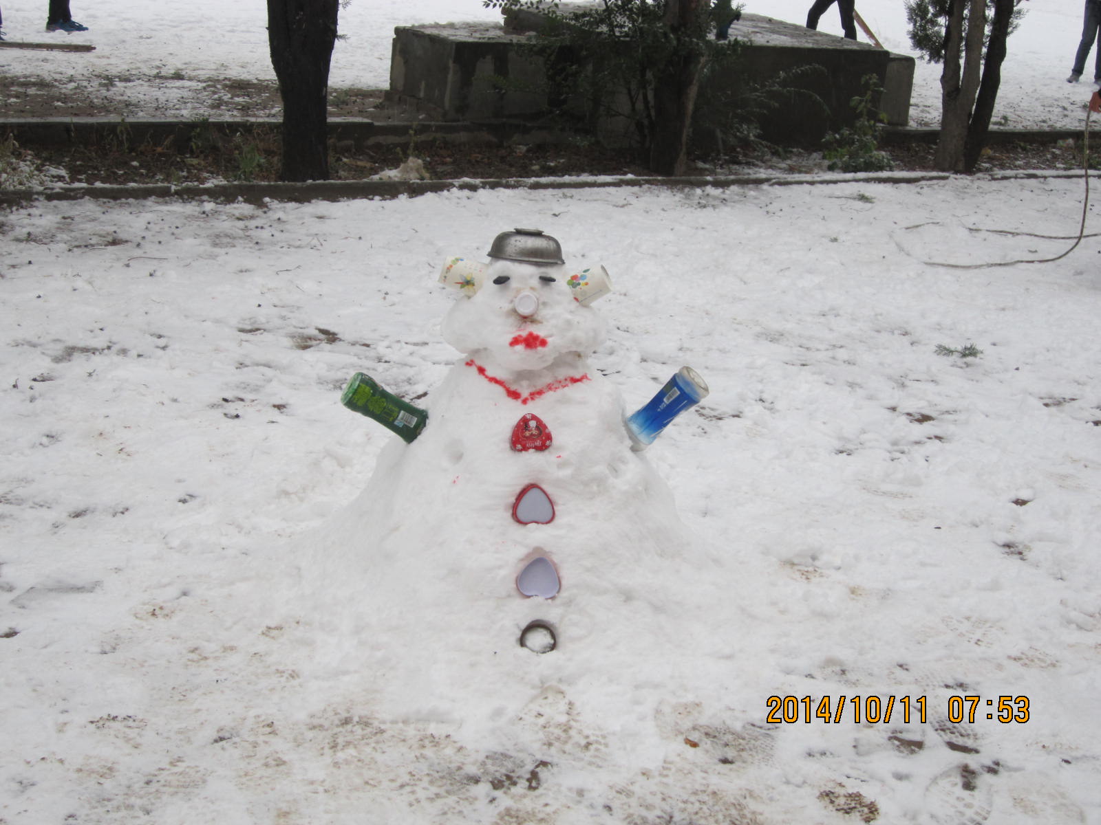 老师还堆了雪人,大大的脑袋,长长的鼻子,圆圆的肚皮,尤其让我们引以为荣的是我老师给雪人镶了一双会说话的眼睛。因为我们找不到帽子所以把垃圾桶插在了雪人的头上,像一顶灰黑色的帽子,还找了块红色的布当围巾围在雪人的脖子上,非常鲜艳。通过堆雪人,我明白了一个道理:干什么事,只要分工合作,各尽其能,什么事都能做成!