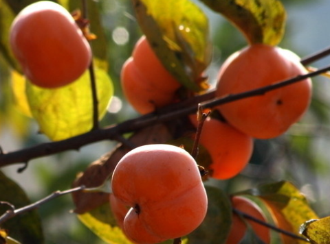 红红的大柿子挂在了枝头,老远就能闻到柿子的香味,那些红得透明的柿子,摘下一个,我们就可以发现,它就想一个个小红灯笼,那黄色蜜甜的汁水便从你嘴角上流下来,那甜味会叫人越吃越想吃。
