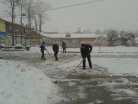 大雪过后,村民们为了人们的方便正在勤劳的铲雪呢!虽说我不舍的这么美的雪,但一想到路上的行人因为雪太滑而被绊倒,我就不会这么想了。我应该向村民们学习。