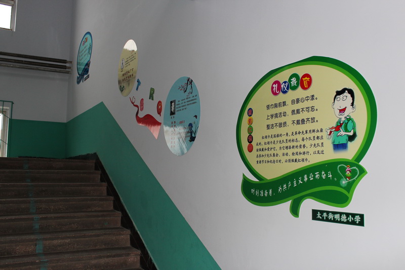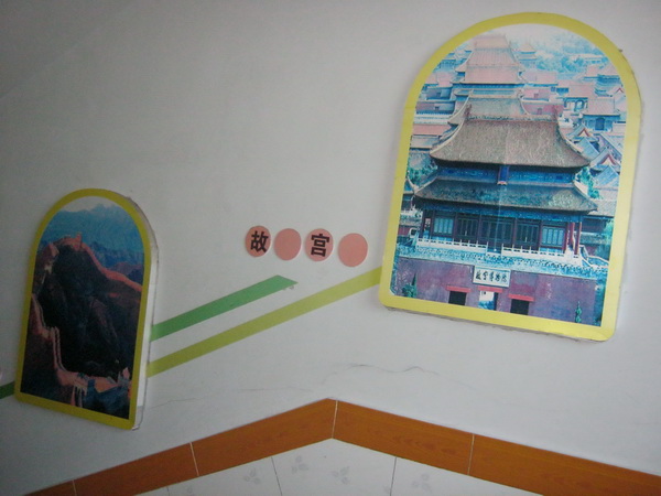 为了让学生们了解新中国的名胜古迹、秀丽山川,也为了增长学生们的课外知识,学校特地在楼道内布置了形式多样的文化墙,并将那些名山大川、古迹名胜地的图片张贴在墙上,供同学们欣赏。你们想想,当我们从劳累的学习生活走出来,边放松,边欣赏新中国的秀丽风景,那将是一件多么惬意的事啊!