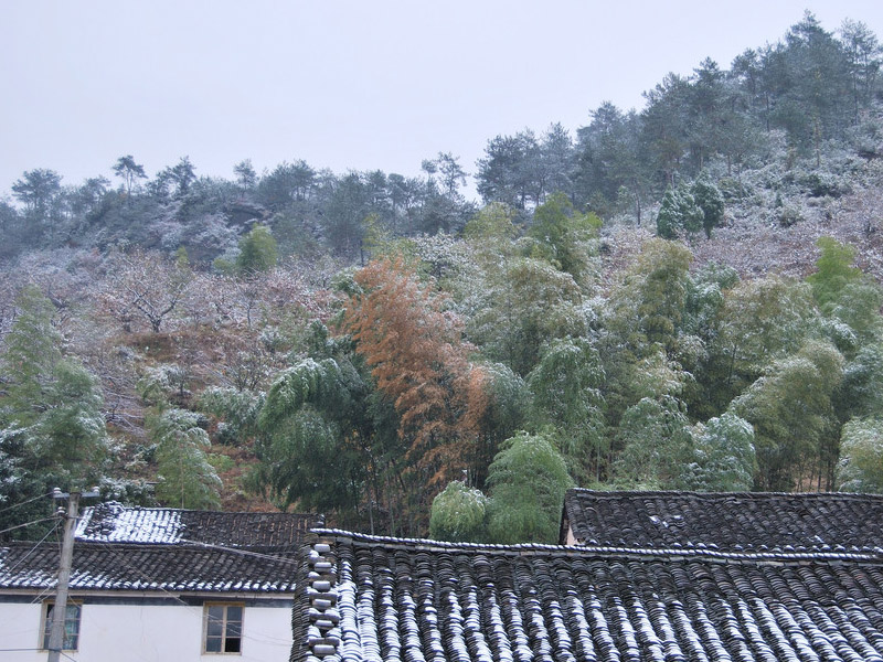 刚过冬不久就下了一场大雪,房顶上积了一层白雪,亮晶晶的,树上开了一朵朵白花,美丽极了。早晨,我们非常高兴,像过节一样在雪地上玩耍,一张张红彤彤的脸上洋溢着欢快的笑脸。上班的大人们还是一样的忙碌,悠闲的老人们,一边在屋里取暖,一边看着门外,嘴里念叨着:"好雪!好雪!"