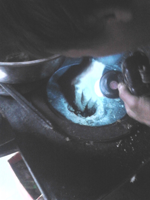 寒冷的秋风夹杂着阵阵凉意夹面而过,在不知不觉中冬天又不期而至。刚要准备生火,炉盖打开,却发现铉子早已破旧不堪了,无奈之下,老爸只得重新铸了。