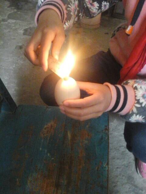 我干就干,我拿出一个蛋壳,又抓了一把沙子。先小心翼翼地把沙子慢慢地从蛋尖的小孔倒进蛋壳里,为了让沙子平平的沉在蛋壳的底部,我轻轻摇了摇蛋壳,然后我拿上蜡烛,让烛泪一滴一滴从蛋壳的小孔滴进去,让它和沙子融合、凝固。可是当我把蛋壳立在桌子上时,它却斜向一边。