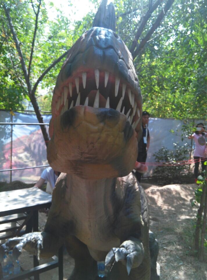 霸王龙可能是有纪录以来生活在地球上最大型食肉类恐龙之一。它是食肉类最晚的一支,它具有六十个锯齿状边缘的利牙,有些达18厘米长。它具有硕大的上下颚;仅仅头颅长达1.3米,它或许能够吃下一整个人——假若那时候周围真有人类存在的话。霸王龙站起身高超过两层楼高,一口可以吞下一头牛,奇怪的是霸王龙前脚非常矮小,和人手臂差不了多少,因此有些科学家认为霸王龙无法捕食,只能吃死尸。 霸王龙庞然大物,整个身体好像是专为袭击其他恐龙而设计的;头长而窄,两颊肌肉发达,颈部短粗,身躯结实。后肢强健粗壮,尾巴不算太长,可以向后挺直以平衡身体,张开大口,有长约15厘米的利齿……只是前肢细小得不成比例,而且只有两只较弱的手指。尽管它是恐龙世界的霸主,也没能逃脱6500万年前的那场大灾难。曾经有人认为霸王龙是笨重迟缓的动物,但是最新的研究认为霸王龙奔跑起来时速可达40公里以上,果真如此的话,恐怕没有什么猎物可逃过它的追杀了。后来发现了一具鸭嘴龙的化石,而它的尾椎骨上居然有霸王龙的齿印!显然,它不仅成功的逃脱了,而且还活了一段时间。