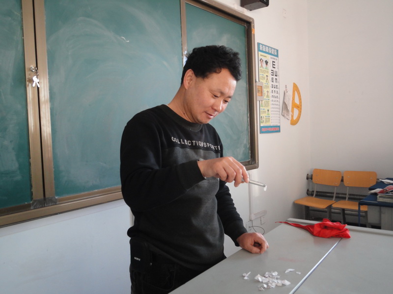刘老师有一双"千里眼"。在上课时,我们正在认真听讲,只见刘老师敲了几下讲桌,也不知道为什么?下课了,老师对我们说:"上课时间,不许再写别的作业,在最后一排的同学,真是太不像话了。"原来,老师早就发现了。 在课余时间,老师总是不停地在批改作业,累的满头大汗,还是继续批改,真是一位好老师啊!