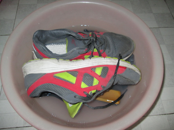 重复刚才的"故事",我开始用劲刷,总算又洗完了。接下来还得涮一遍,烦呀!算了,还是干吧!再将鞋带和鞋垫清洗一遍,好累呀! 哎呀——,终于洗完了,突然发现,洗鞋也不难吗!