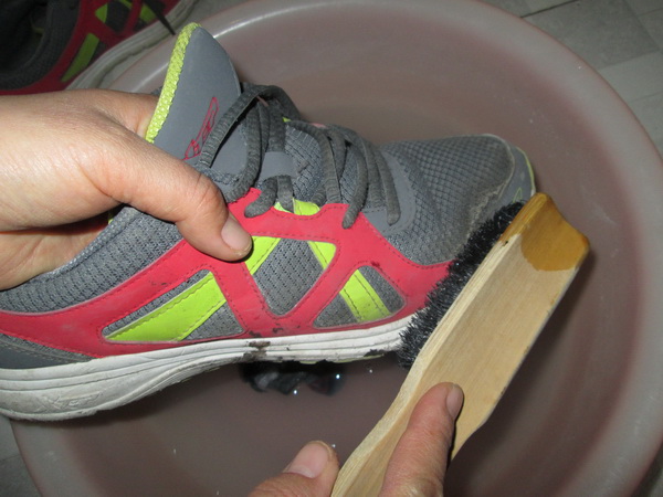说起洗鞋,本人还是第一次,老妈却也不多说也不教,扔下鞋刷便走人。一切具备,只剩洗鞋啦!我拿起鞋刷开始刷刷刷……!总感觉哪儿不对,呀!洗衣粉呢?天啊!赶快找!