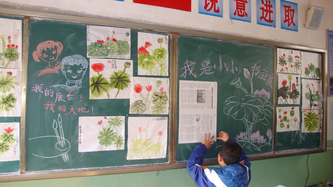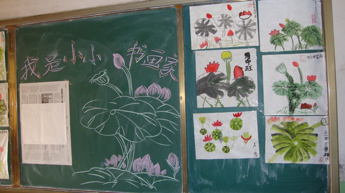当大家把自己的作品上交后,老师就会评选出一些优秀的作品,来补充教室中"我是小小书画家"的展览板。那里常常有我们喜欢的一些美术作品,也成了我们美术课上的范本。若哪位同学的书画作品能在展板上展出,那就是一种自豪和骄傲。