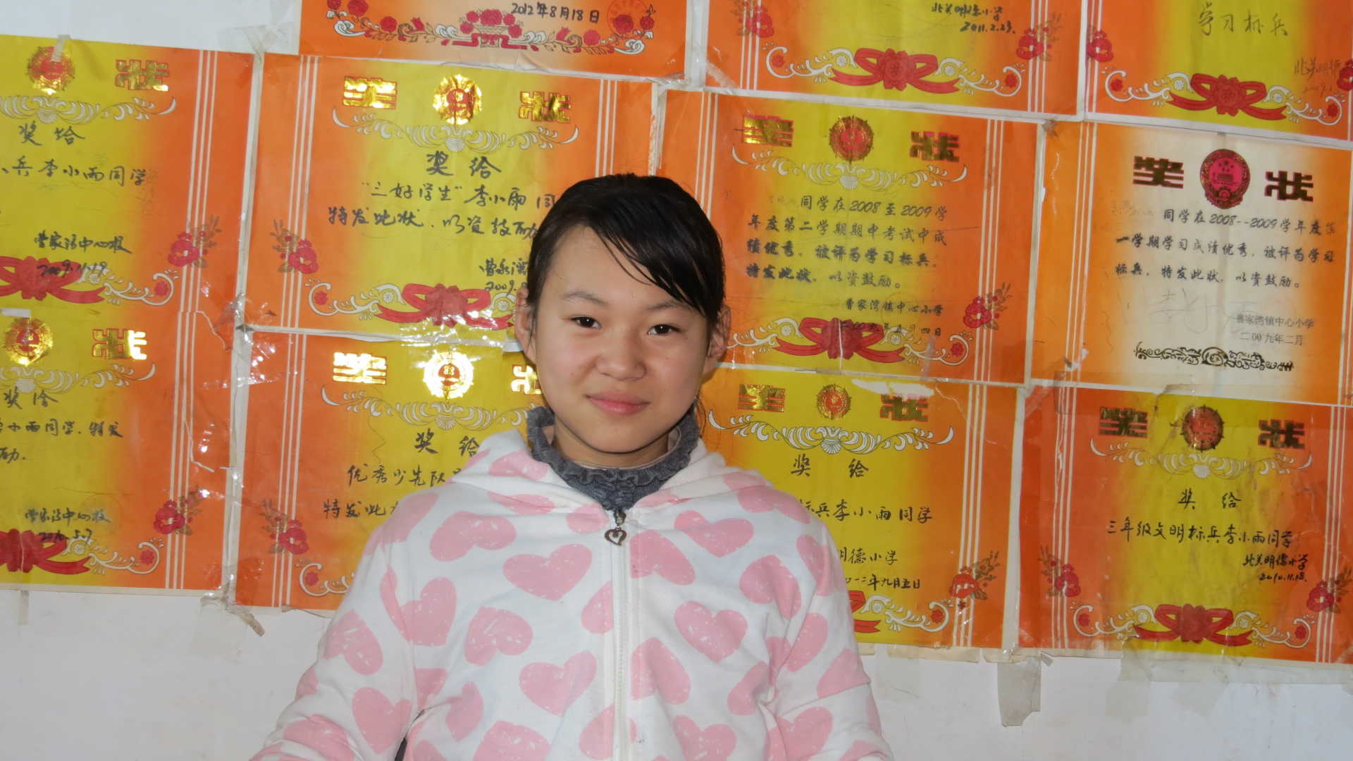 上小学的那六年里,是我学习历程中最为荣耀的日子。由于我家在村小附近,所以小学的所有老师都认识我。不管我在校园还是在校外,只要遇见老师,他们都会摸摸我的头,夸我几句。说什么"小丫头片子又长高了"、"丫头今天表现不错"等等。可能是关注老师多,受到老师的偏爱多一点,我的学习成绩一直很好,只要学校召开表彰大会,我就一定会授奖。所以,六年下来,那面"荣誉墙"早已被我的"硕果"沾满了。