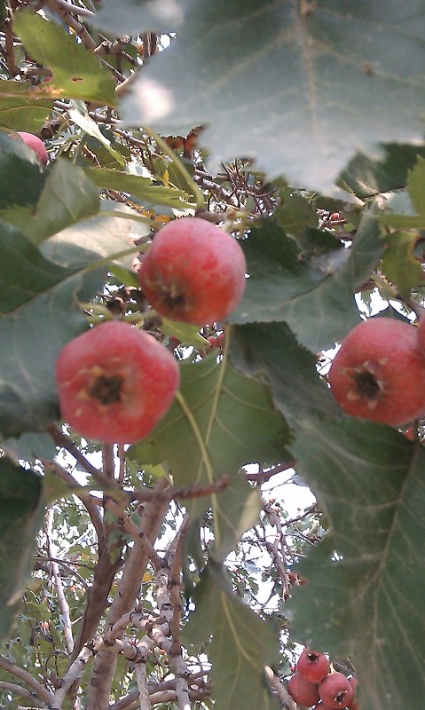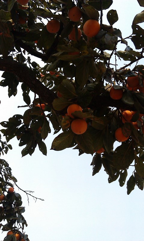 这里不光有柿子,还有山楂,柿子和山楂不一样,不是甜的而是酸的。成熟的山楂是红的圆圆的,差不多跟葡萄一样大。你们知道没有成熟的山楂是什么颜色的吗?