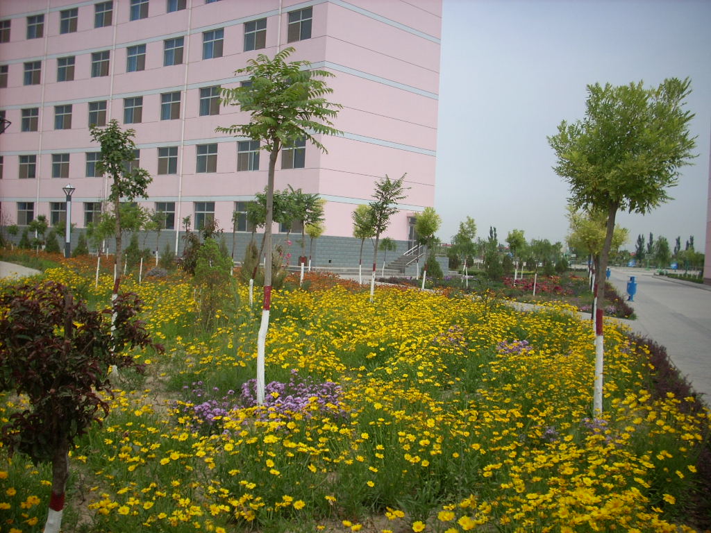 教学楼前面有几十平米的花坛,春天阳光是那么的灿烂.白的、红的、黄的、蓝的各种颜色的花竟相开放。翁翁的叫声,翩翩起舞的蝴蝶,给了这几十平米十足的美丽。下课了,同学们放松心情,饱览这艳丽的色彩,这生活、这境界、这感觉把每一个学生都感染的无比兴奋。