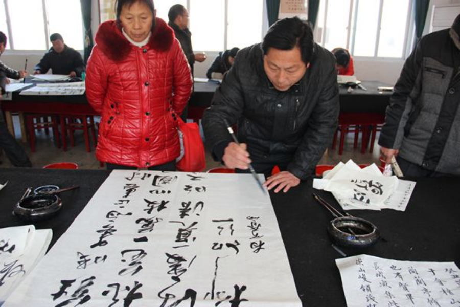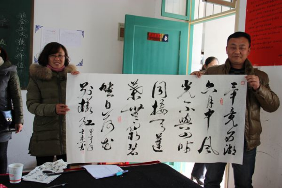 他们的作品中既有典雅的隶书,又有端庄的楷书,也有潇洒的行书,有唐诗宋词,有自创诗词,他们挥毫泼墨,尽展才华,他们同赞教育,尽显风采。