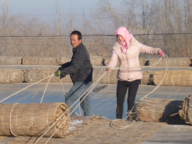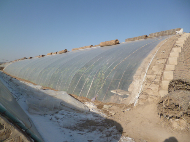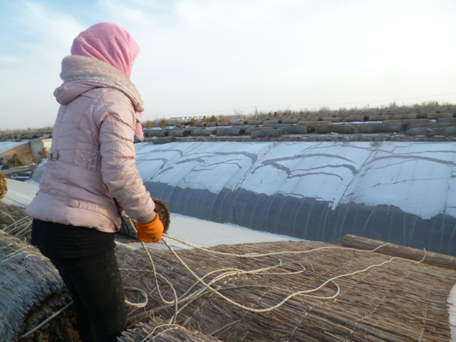 我家有两个大棚,冬天给这两个大棚穿上衣服,但给大棚穿衣服是人工穿的,每天下午都要给大棚穿上衣服,不让的话一夜之间就把棚里的菜冻死了。