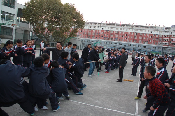 自11月中旬开始,我们学校在七、八、九年级同学中开展了趣味游戏、排球自垫球、拔河等阳光体育活动。