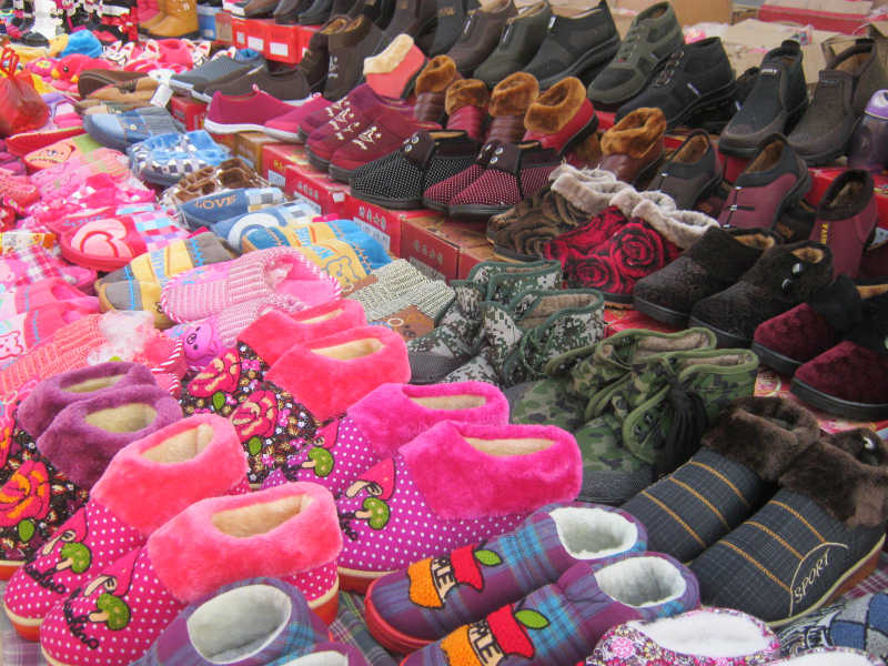 冬天到了,天气越来越冷了,鞋摊上就多出了许多款式的棉鞋.有大号,有小号,有少年专用,有儿童专用,有男士专用,有女士专用.想要什么就有什么.有人在这个摊位上看一下,又到那个摊位上看一下.最后找到了合适的鞋子,就会领着自己的朋友,以及自己喜欢的鞋子走了.