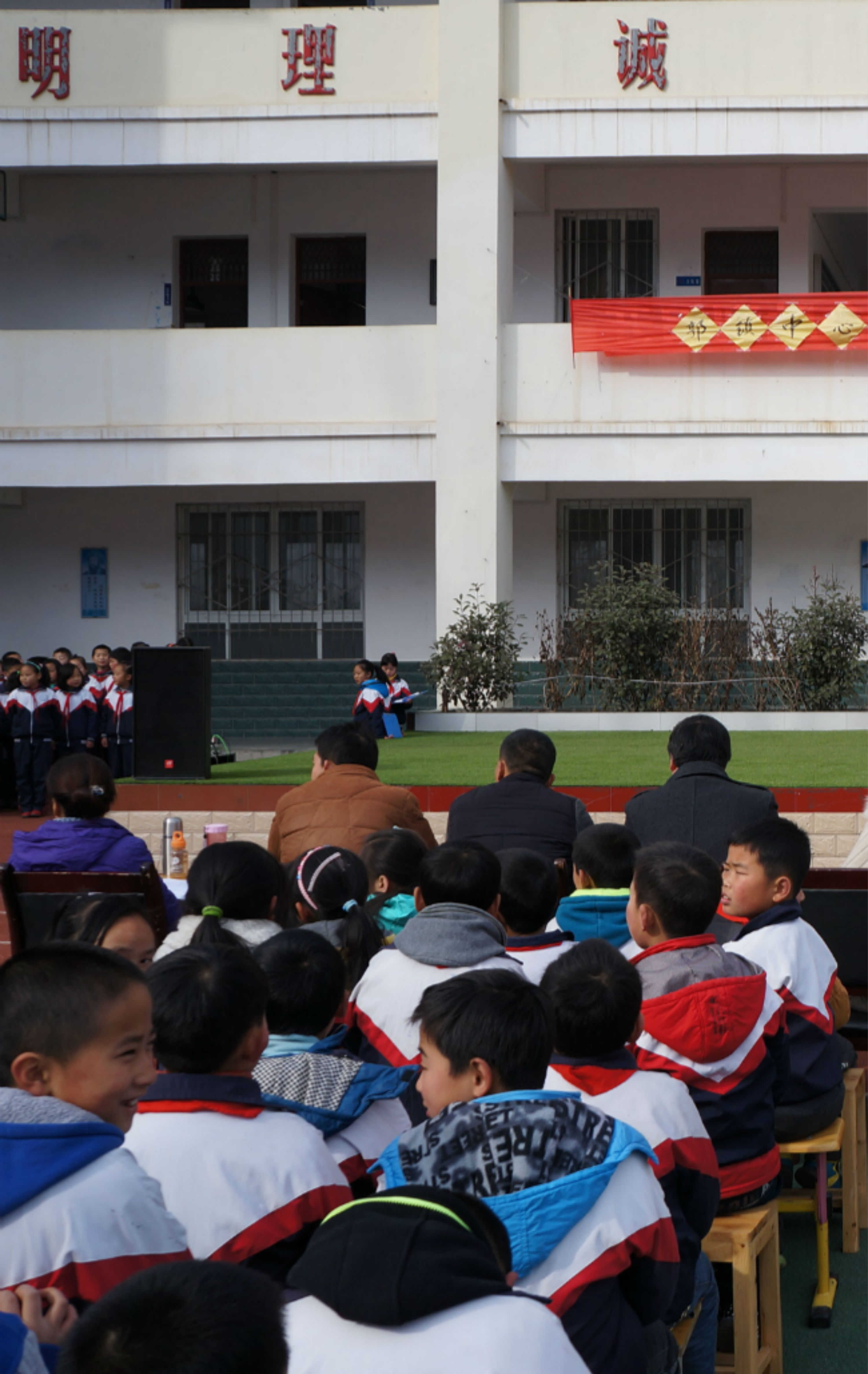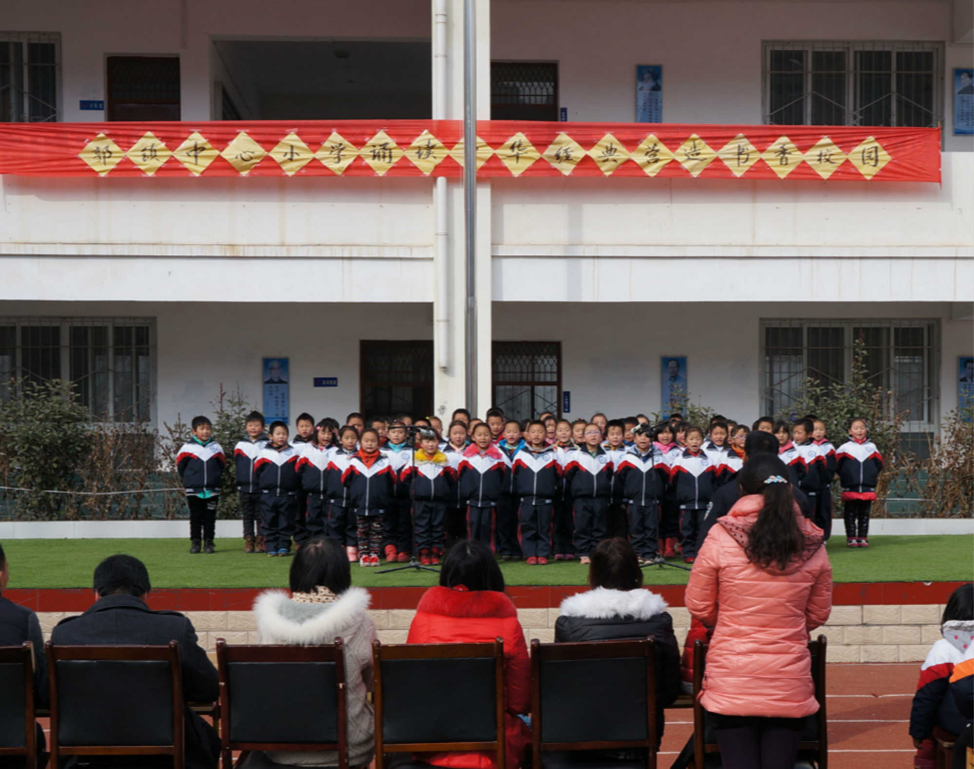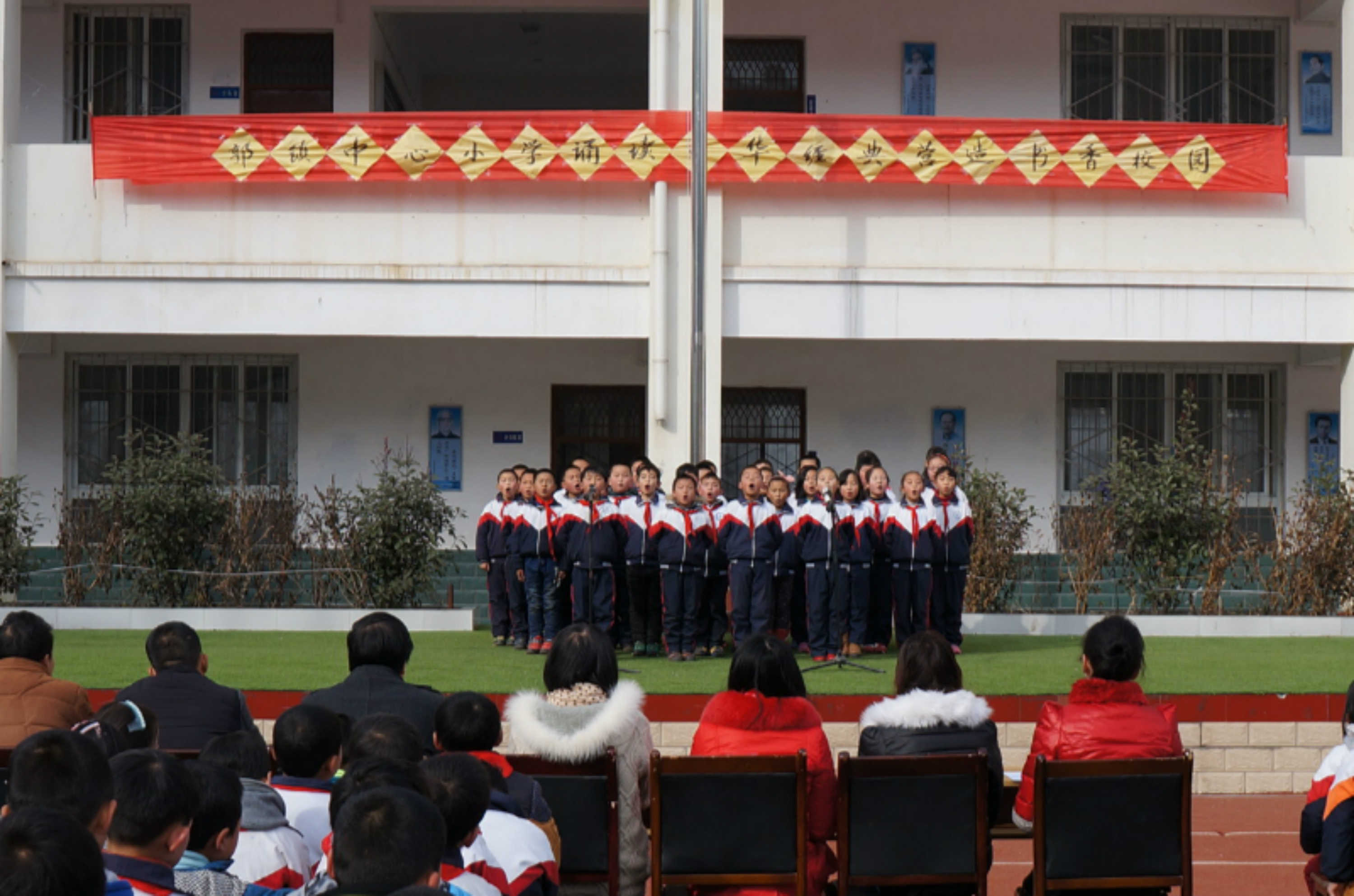 在这充满诗情画意的校园里,时不时就有同学的读书声,背诵声等,我们学校为了让学生进一步对经典诗歌、古文有一个更好的传颂,在十二月中特别举行了经典诵读书香校园活动。