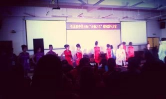 我按分配上的座位坐了下来,不一会,声乐组开始了。忽然,灯光一暗,舞台上立刻出现了一个个的彩色泡泡。悠扬的琵琶声在我耳边响起,第一个出场的是我们班的同学。唱的是《红楼梦》的主题曲(枉凝眉),悲伤的曲调把我们都带入了歌曲当中,眼前又浮现红楼梦的场景。一曲完毕,全场寂静,全场爆发出雷鸣般的掌声。