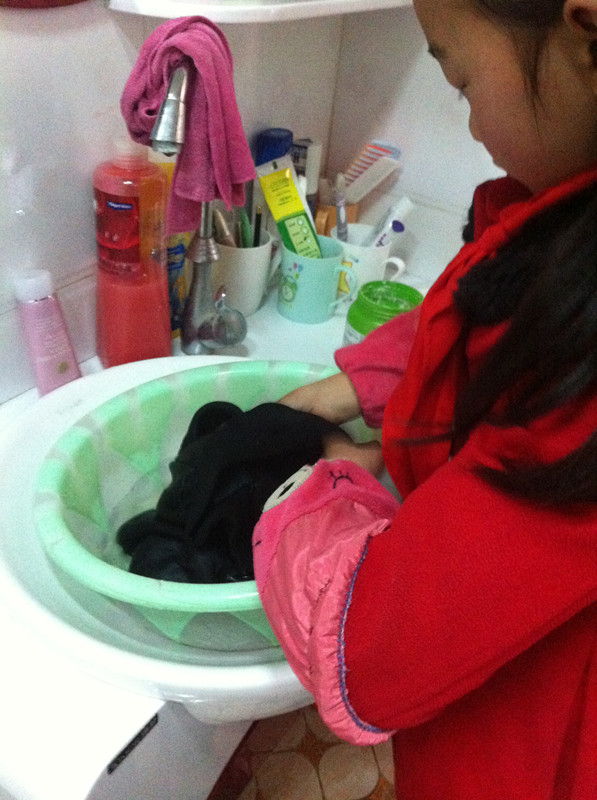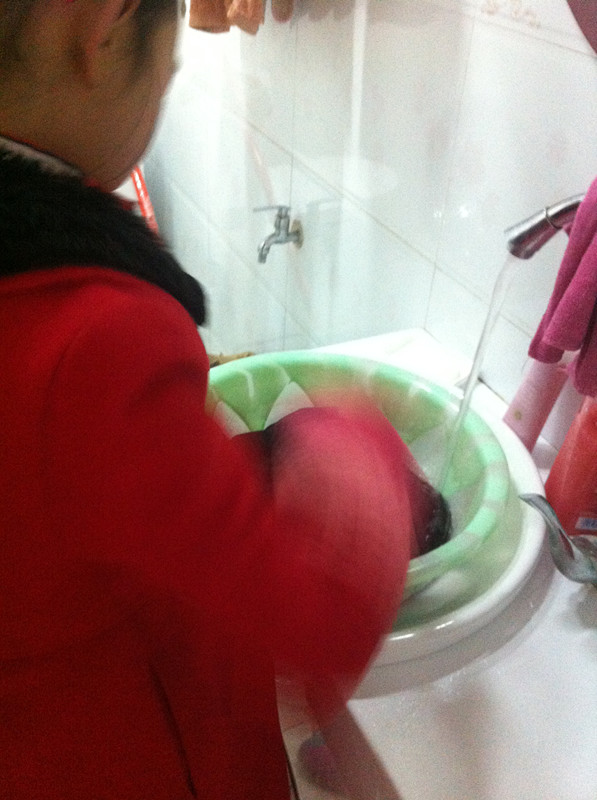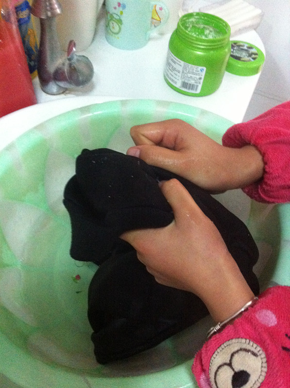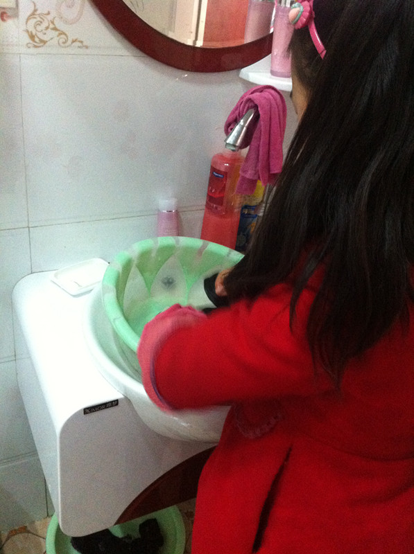 开始的时候,我的裤子有点厚,不太好洗。搓了好久才把这条裤子洗完。